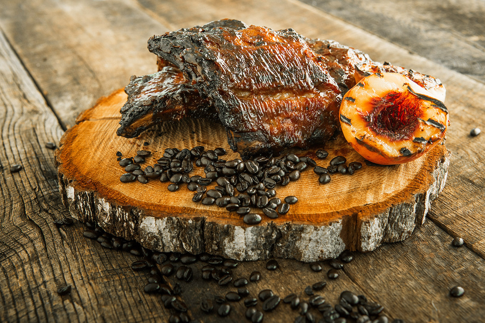 Carré de côtes d'agneaux sauce espresso et pêches grillées